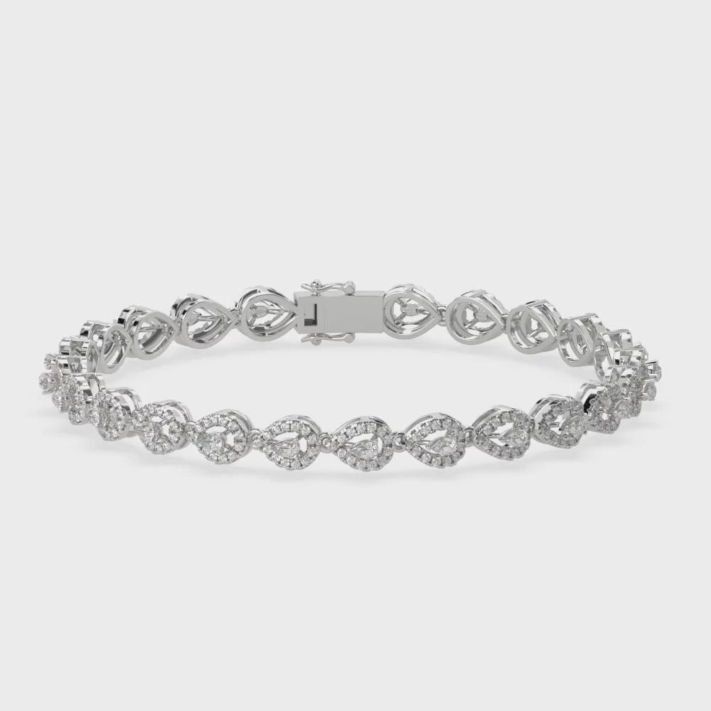 Rose Teardrop Diamond BraceletThe Rose Teardrop Diamond Bracelet features elegant teardrop-shaped links adorned with lab-grown diamonds, set in 18-carat rose gold. This exquisite bracelet combines delicate design with timeless beauty, perfect for any occasion.