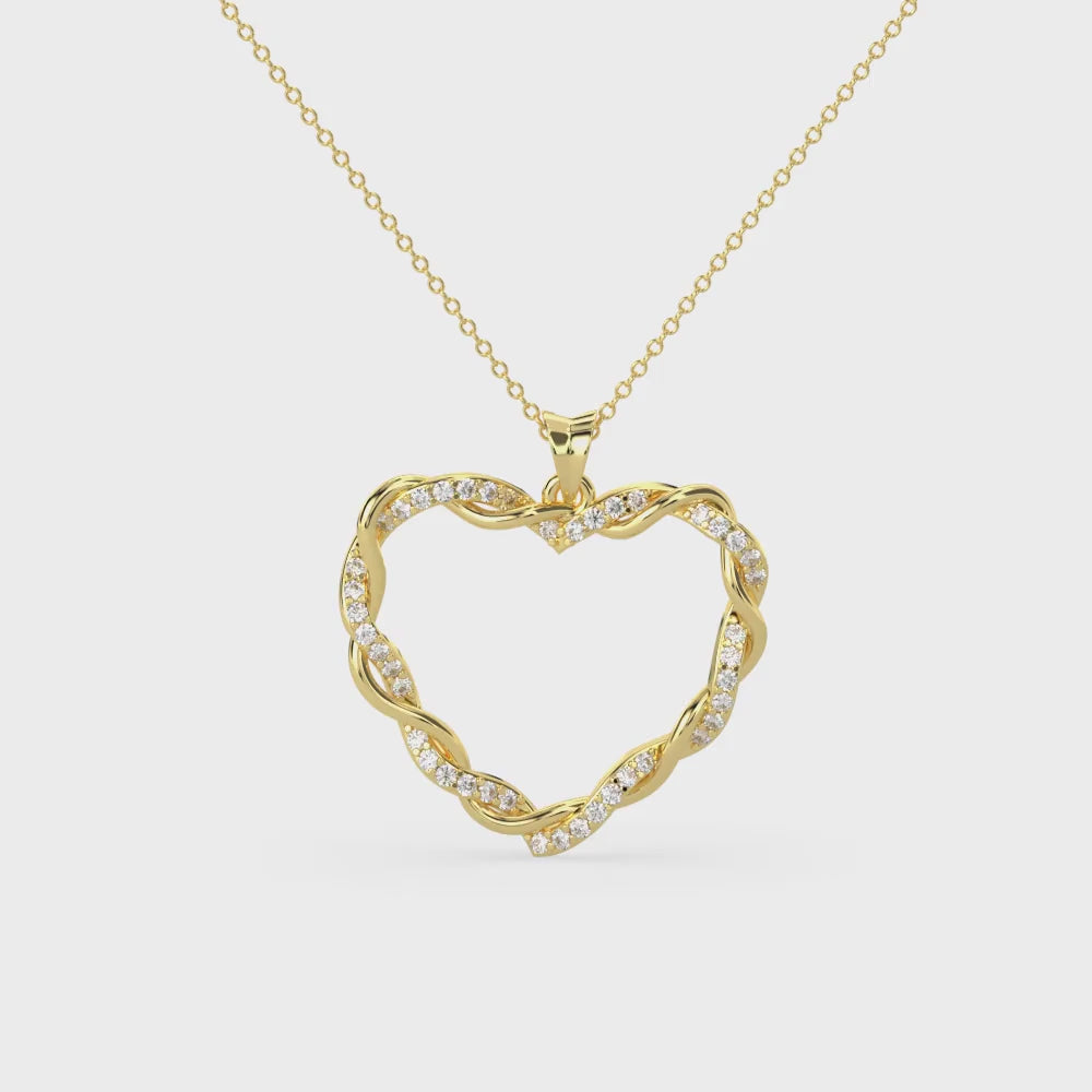 Twisted Heart Diamond PendantThe Twisted Heart Diamond Pendant features a beautifully intertwined heart design with lab-grown diamonds, set in 18-carat rose gold. This pendant symbolizes love and elegance, perfect for any romantic occasion.