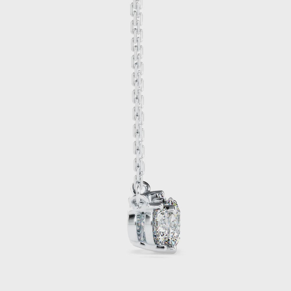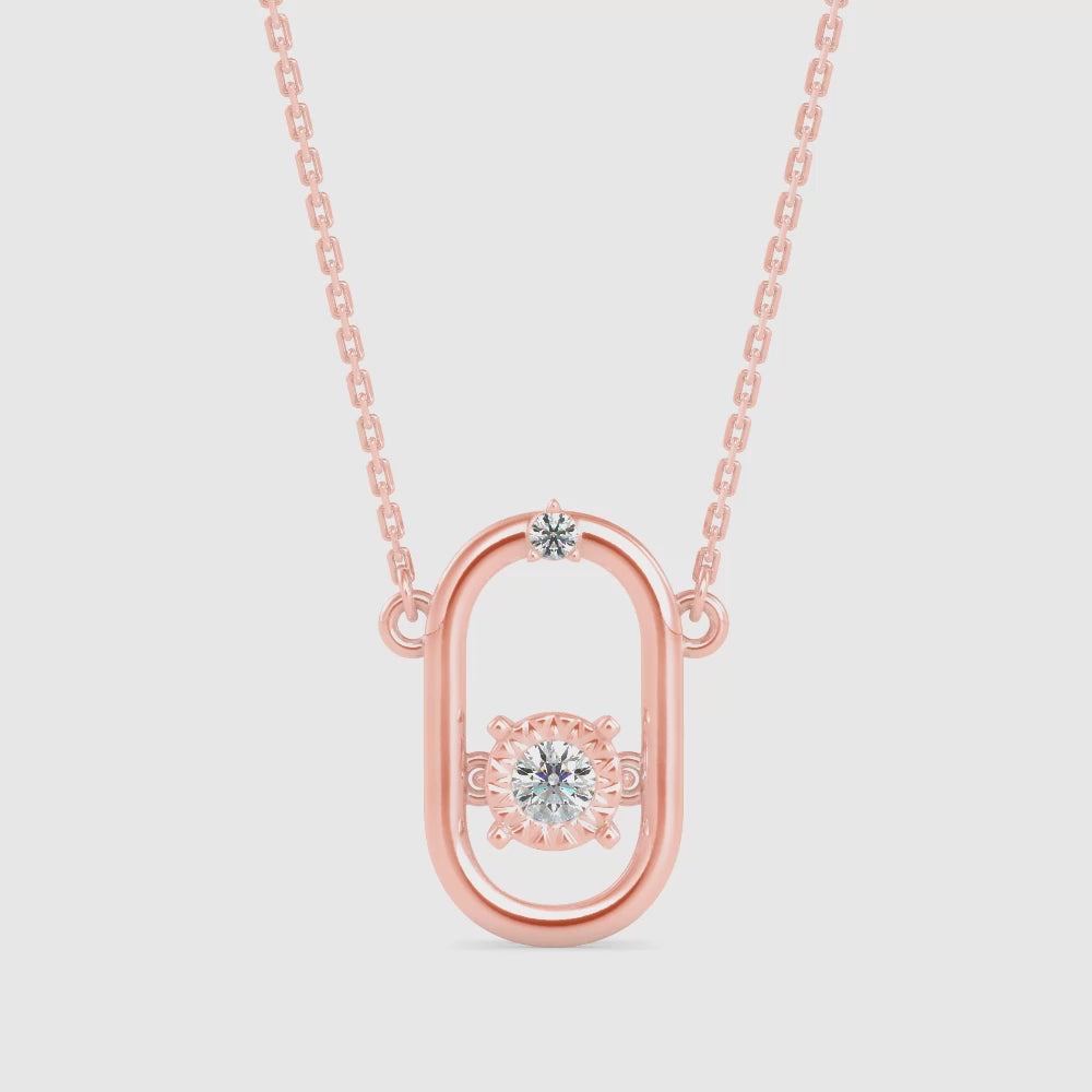 Modern Oval Solitaire NecklaceThis modern Necklace features a unique oval design in rose gold, accented with a dazzling lab-grown diamond solitaire at the center and a smaller diamond above. Ideal for a contemporary and chic look.